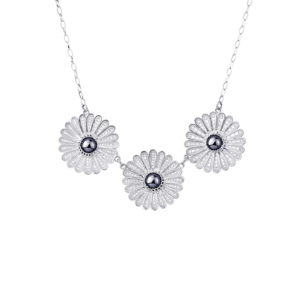 HEMATITE SILVER FILIGREE NECKLACE