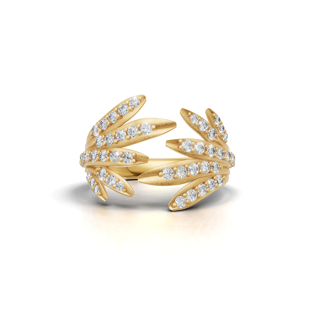 Crafted as a ring in 18K yellow gold, set with 0.59 ct of white diamonds to create a full, luminous surface that embodies quiet confidence and exceptional craftsmanship.